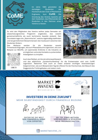 112ENTDECKE DIE WELTDER FINANZEN & LERNEVON EXPERTENSEI TEIL EINES AKTIVENVEREINSLEBEN & SCHLIESSENEUE FREUNDSCHAFTENMARKETMAVENS_EVINVESTIERE IN DEINE ZUKUNFTMEHR SELBST%u00c4NDIGKEIT DURCH FINANZIELLE BILDUNGEINFACHANMELDEN UNDDABEI SEINIm Jahre 1995 gr%u00fcndeten die damaligen Studenten der Hochschule den Club of Mechanical Engineers, kurz CoME. Die Gr%u00fcndung des Vereins basierte auf dem Gedanken, das Miteinander der Studenten in den Rahmen eines Vereins zu fassen. So wird den Mitgliedern des Vereins seither jedes Semester ein abwechslungsreiches Programm angeboten, das sowohl gemeinschaftliche als auch technische Aspekte abdeckt. Den Grundstein legen die %u201eStammtische%u201c, welche regelm%u00e4%u00dfig stattfinden und bei gem%u00fctlichem Beisammensein den Austausch zwischen den Studenten f%u00f6rdern. Des Weiteren werden f%u00fcr die Studenten sowohl Firmenbesichtigungen, als auch Messebesuche organisiert, wie zum Beispiel zur BAUMA, um spannende Einblicke in die Industrie zu erm%u00f6glichen und erste Kontakte zu potenziellen Arbeitgebern zu kn%u00fcpfen. Auch das Maifest, ein Konstruktionswettbewerb und das allj%u00e4hrliche %u201eQuietschie-Bowling%u201c f%u00fcr die Erstsemester wird vom CoME organisiert. Nebenher wird auch an vielen anderen wichtigen Veranstaltungen teilgenommen, wie zum Beispiel dem Tag der offenen T%u00fcr der Hochschule, den Besuch des Deggendorfer Fr%u00fchlingsfestes und vielem mehr.