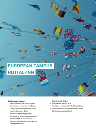 EUROPEAN CAMPUSROTTAL-INNStudieng%u00e4nge | Courses%u2022 Building Products and Processes / Bauprodukte und -prozesse (B.Eng.)%u2022 Energy Systems Engineering (B.Eng.)%u2022 Health Informatics (B.Sc.)%u2022 Industrial Engineering (B.Eng.)%u2022 International Tourism Management / Health and Medical Tourism (B.A.)%u2022 Business Administration and Service Management (B.A.)%u2022 Digital Health (M.Sc.)%u2022 Global Public Health (M.Sc.)%u2022 Healthy and Sustainable Buildings (M.Eng.)%u2022 International Tourism Development (M.A.)%u2022 Medical Informatics (M.Sc.)